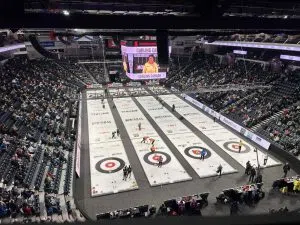 (Above: Action at the Canadian Curling Trials for the Italy Olympics last night at the Scotiabank Centre in Halifax.)